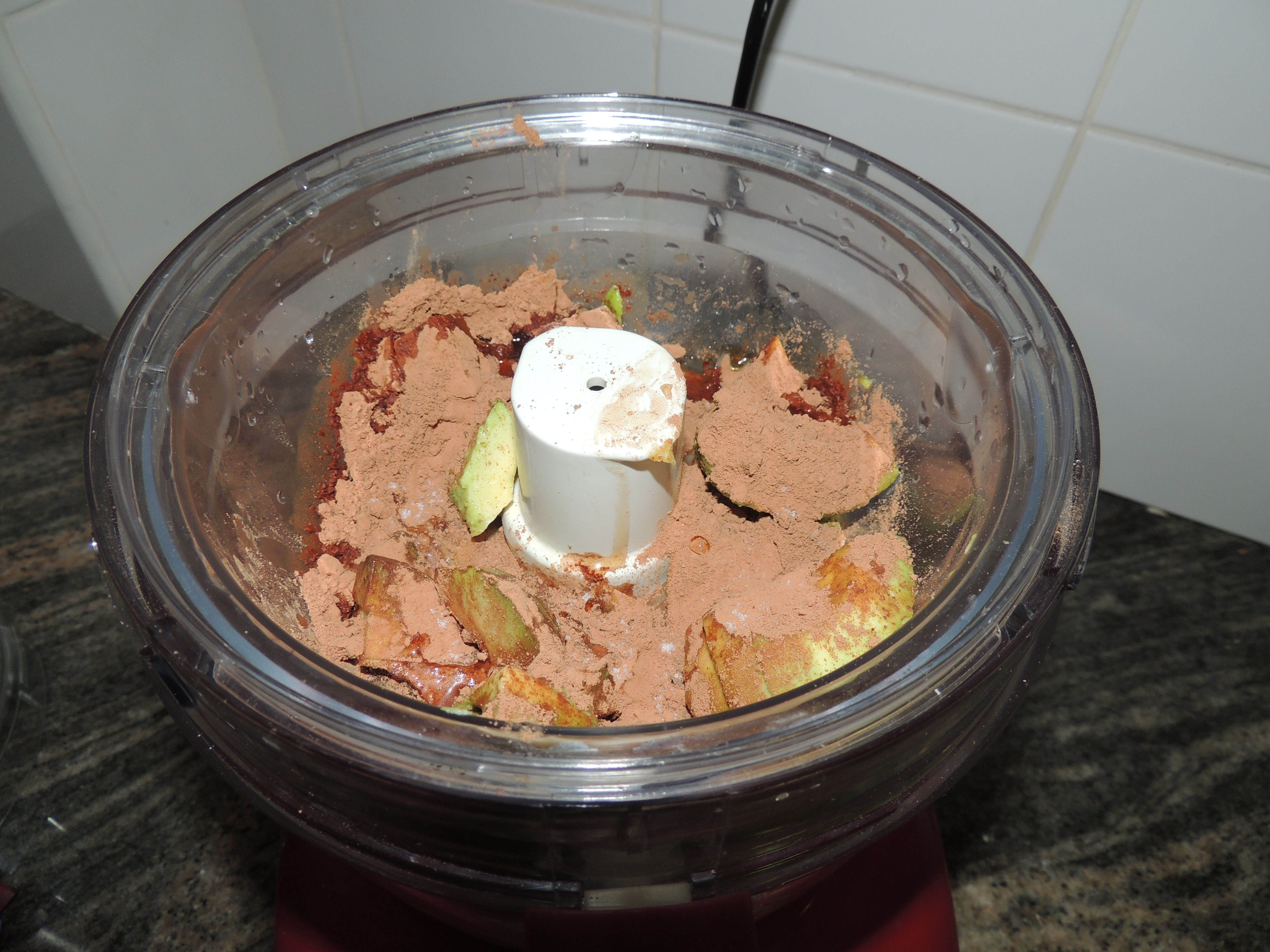 3.    Add the cacao powder, milk, agave, vanilla and salt to the avocado