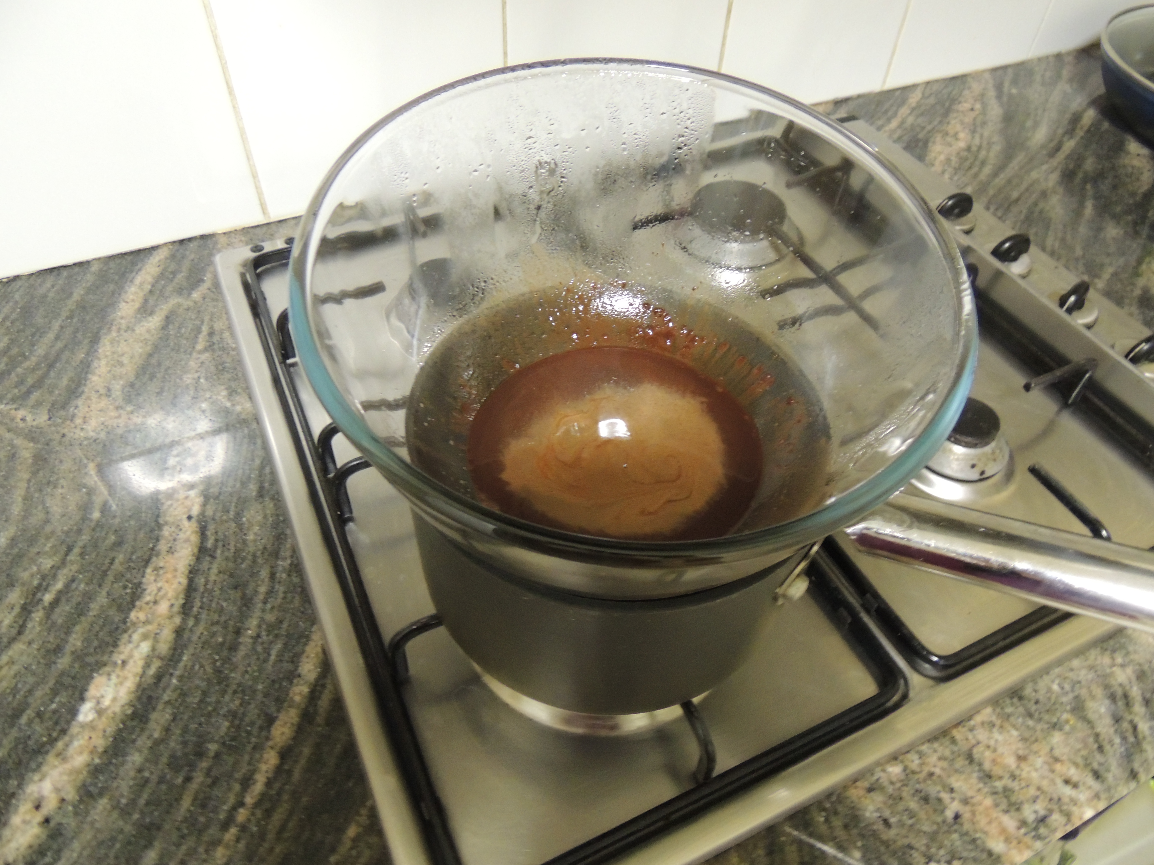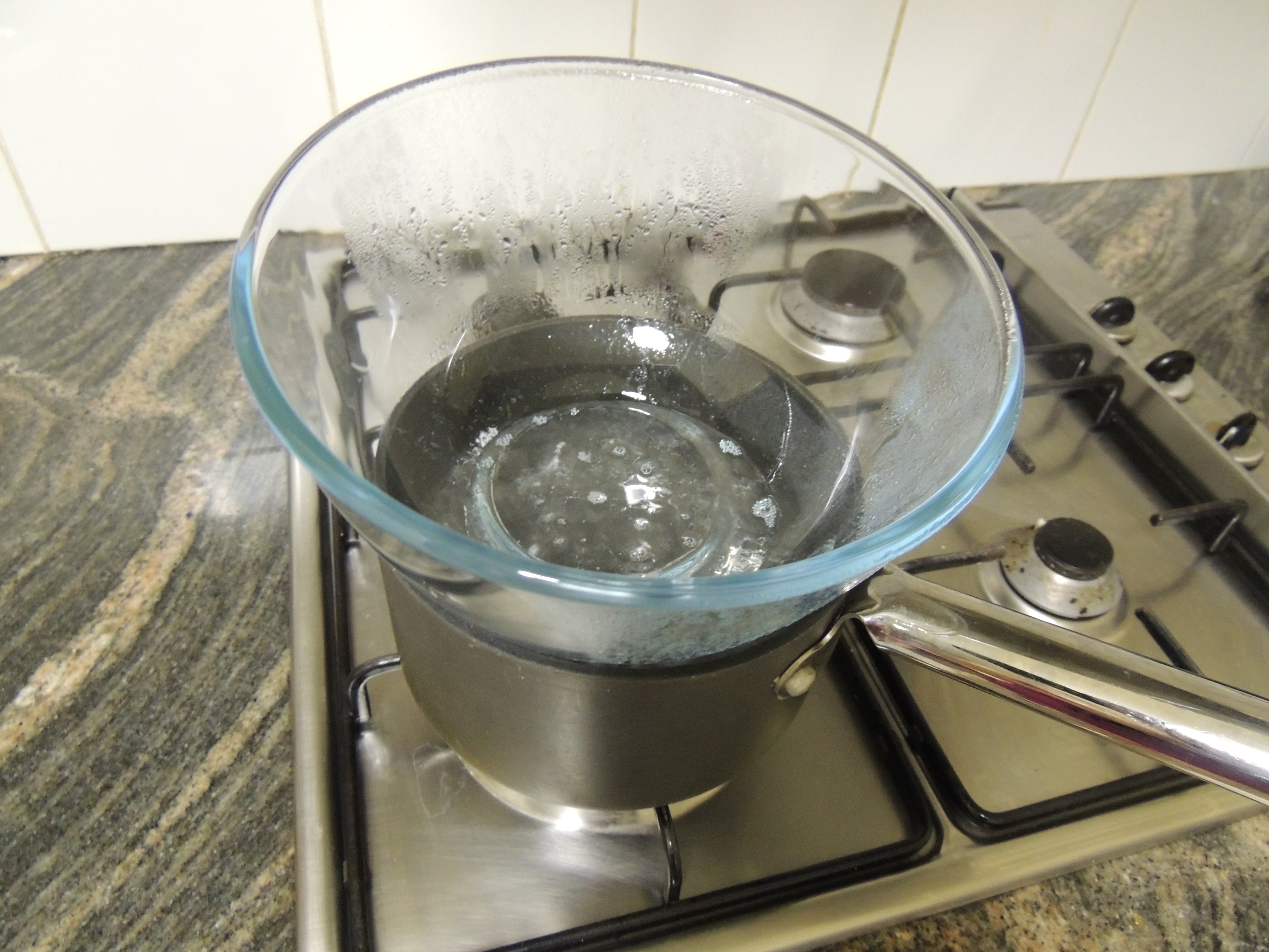 1. Create a double boiler by placing a glass bowl over a saucepan of hot water