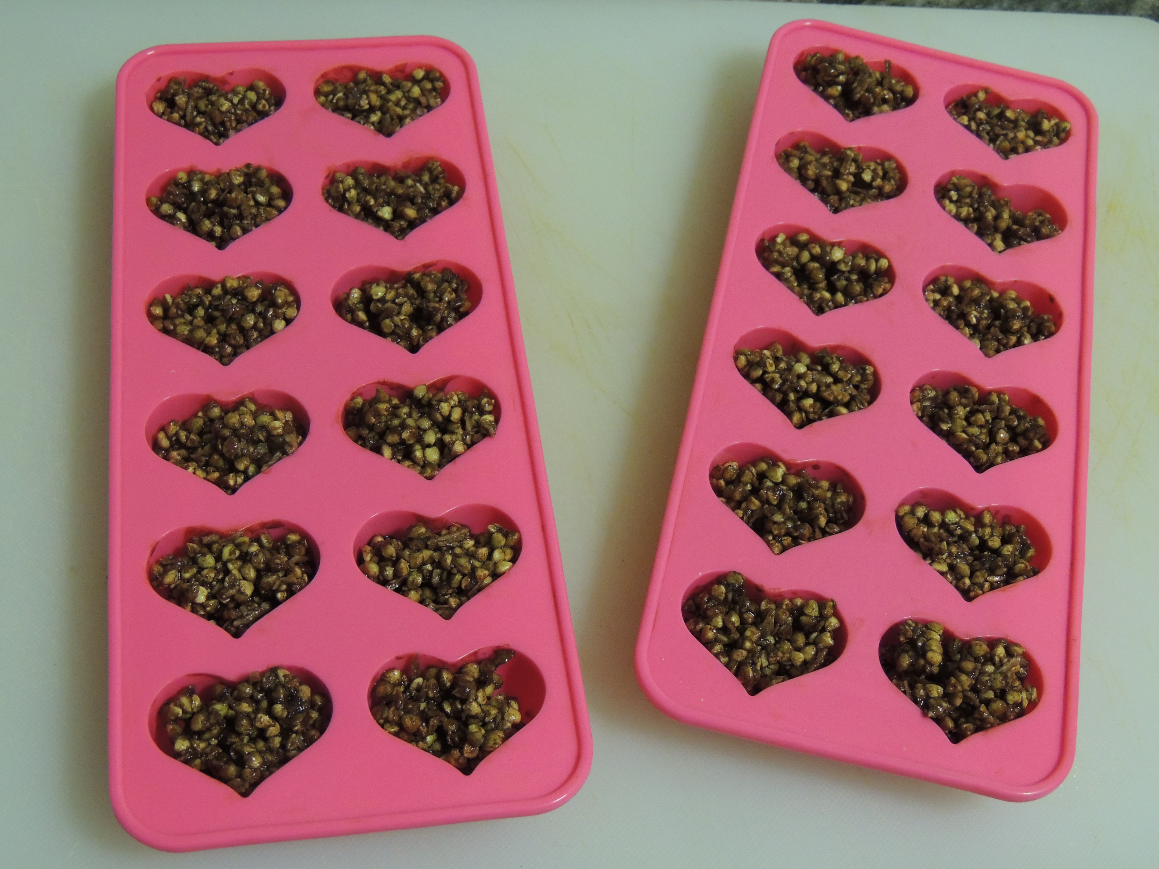 6. I scooped these in to heart shaped ice cube trays but you could use mini patty cases